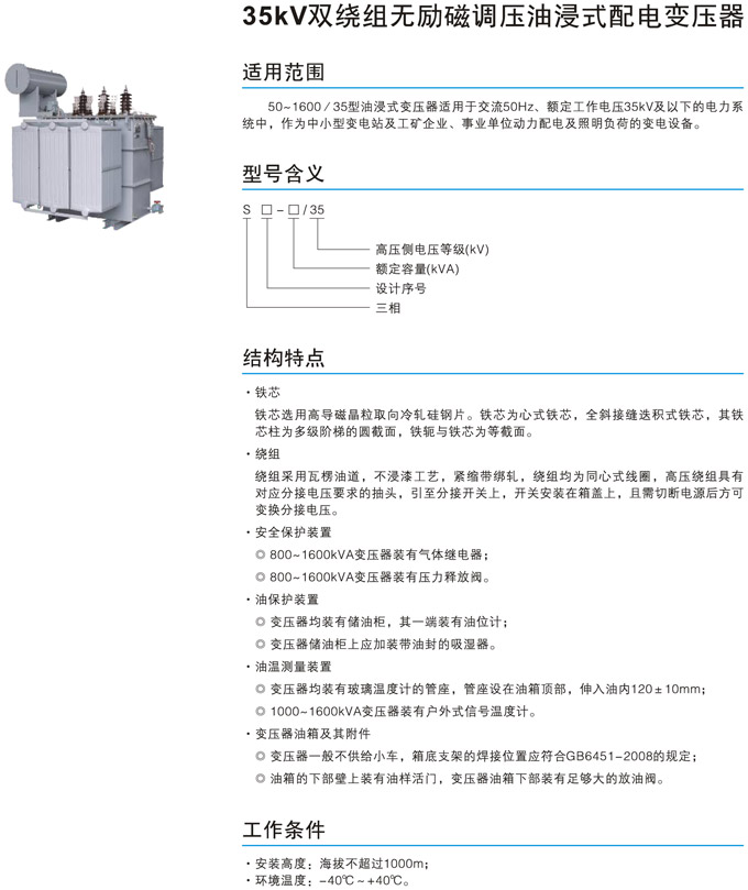 35kV雙繞組無勵磁調壓油浸式配電變壓器
