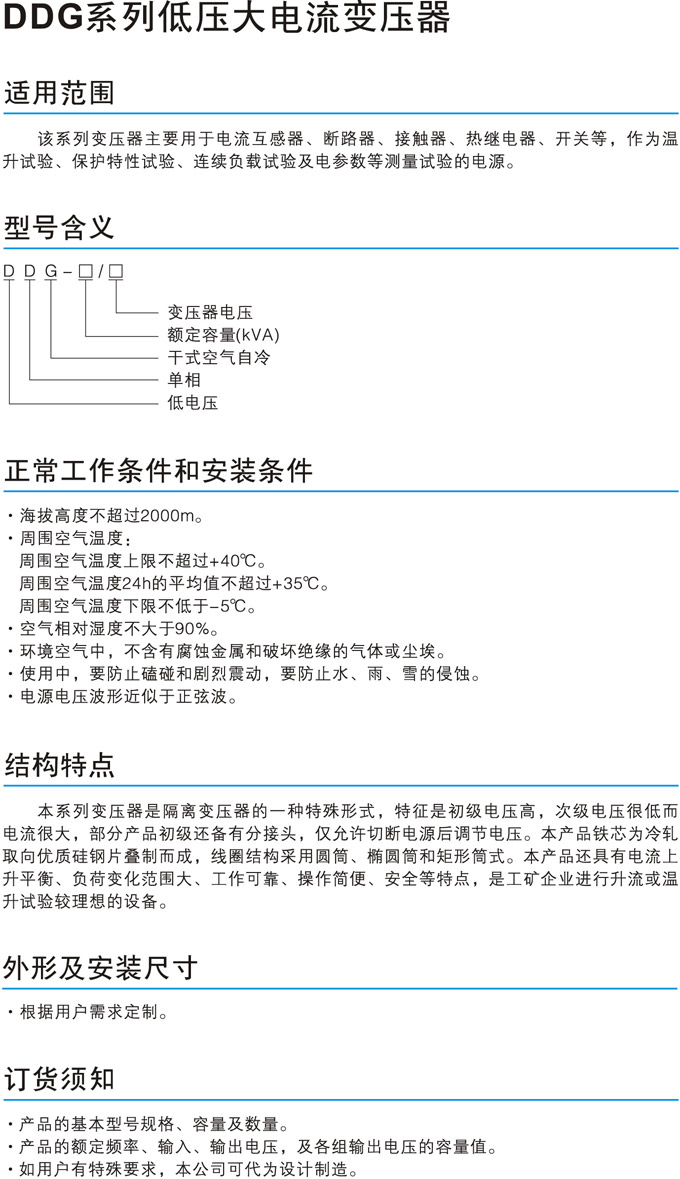 DDG系列低壓大電流變壓器