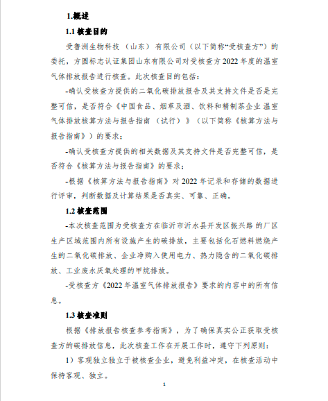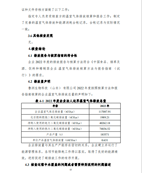 魯洲生物科技(山東)有限公司2022年度溫室氣體排放核查報告